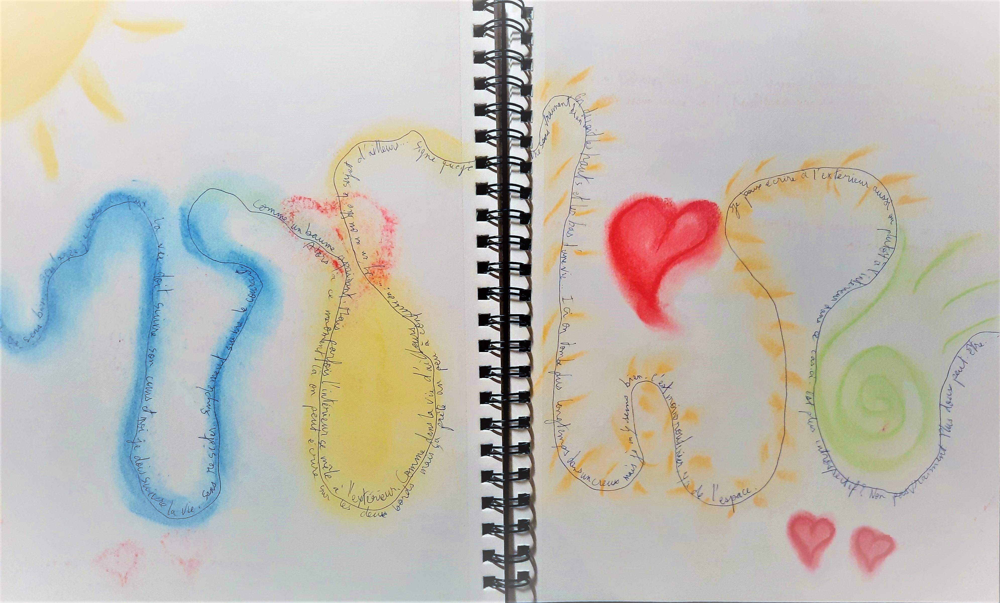 Le Journal Créatif est un outil concret et flexible dont on peut se servir tant de façon introspective que de façon ludique et créative. L’objectif clé reste la connexion à soi-même. On fait son journal pour jeter l’ancre vers le centre de soi, pour créer un espace afin de laisser émerger les ressentis intérieurs et ainsi d’avoir accès à ses ressources personnelles.