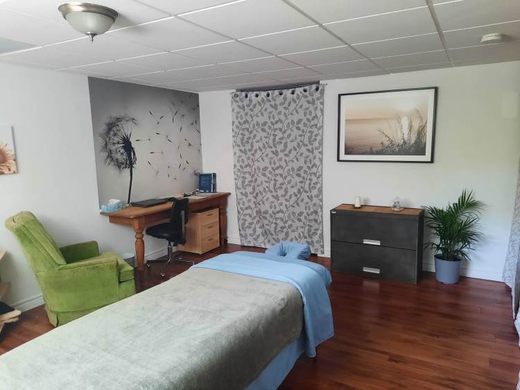 Cependant si vous pouvez vous déplacer, notre salle de massage préparée avec soin vous offrira un bel espace pour vous ressourcer.